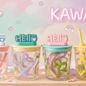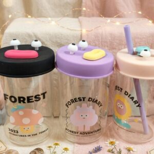 Vaso chico de vidrio c/ tapa + sorbete (57386)