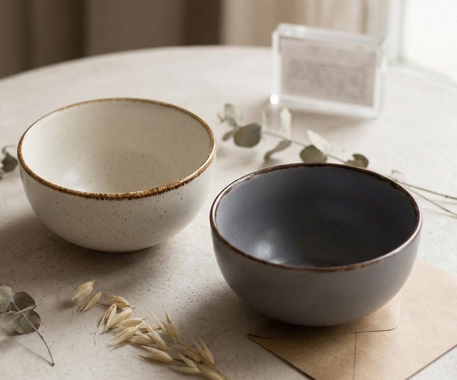 Bowl beige de cerámica c/ borde marrón – 14cm (101399)
