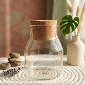 Botella chica de vidrio c/ tapón de corcho (105471)