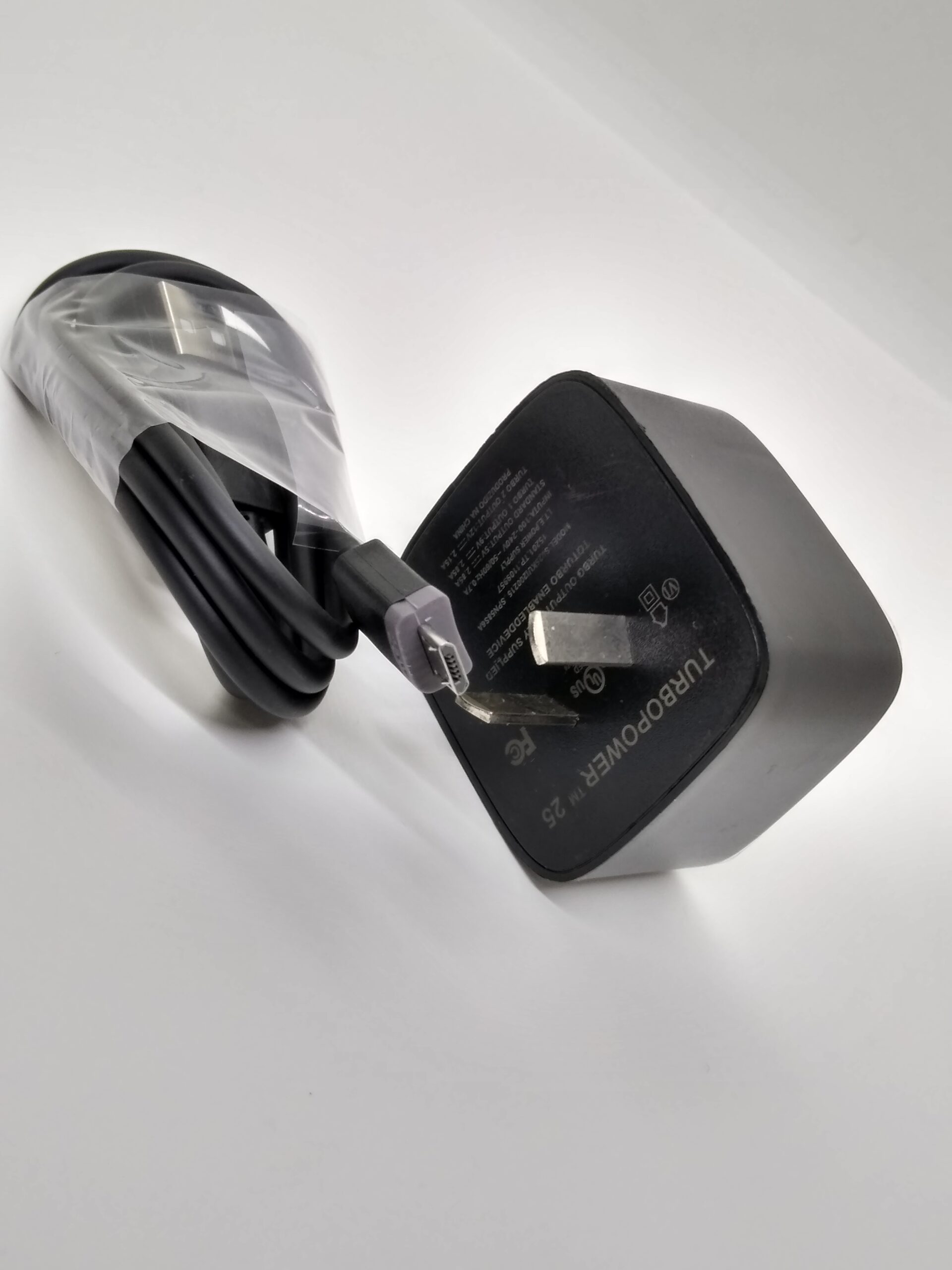 Modelo: MT-02 V8. Entrada: 100-240V; ~50/60Hz; 0.7A. Salida estandar: 5V = 2.85A. Salida Turbo 1: 9V = 2.85A. Salida Turbo 2: 12V = 2.15A. Potencia: 10W.