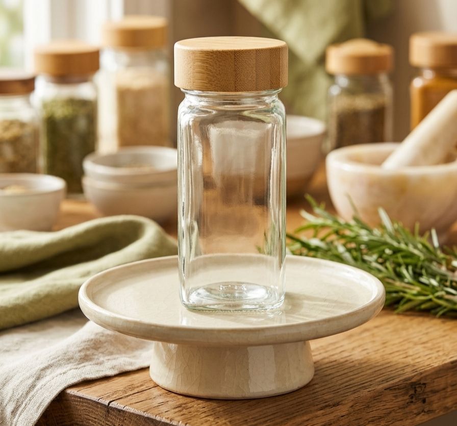 Especiero de vidrio c/ tapa de bambú (C6191)