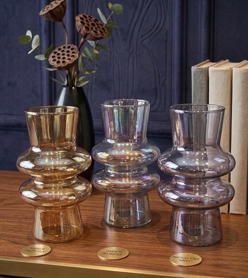 Florero anillado doble de vidrio perlado – 20*8cm (V4117P)
