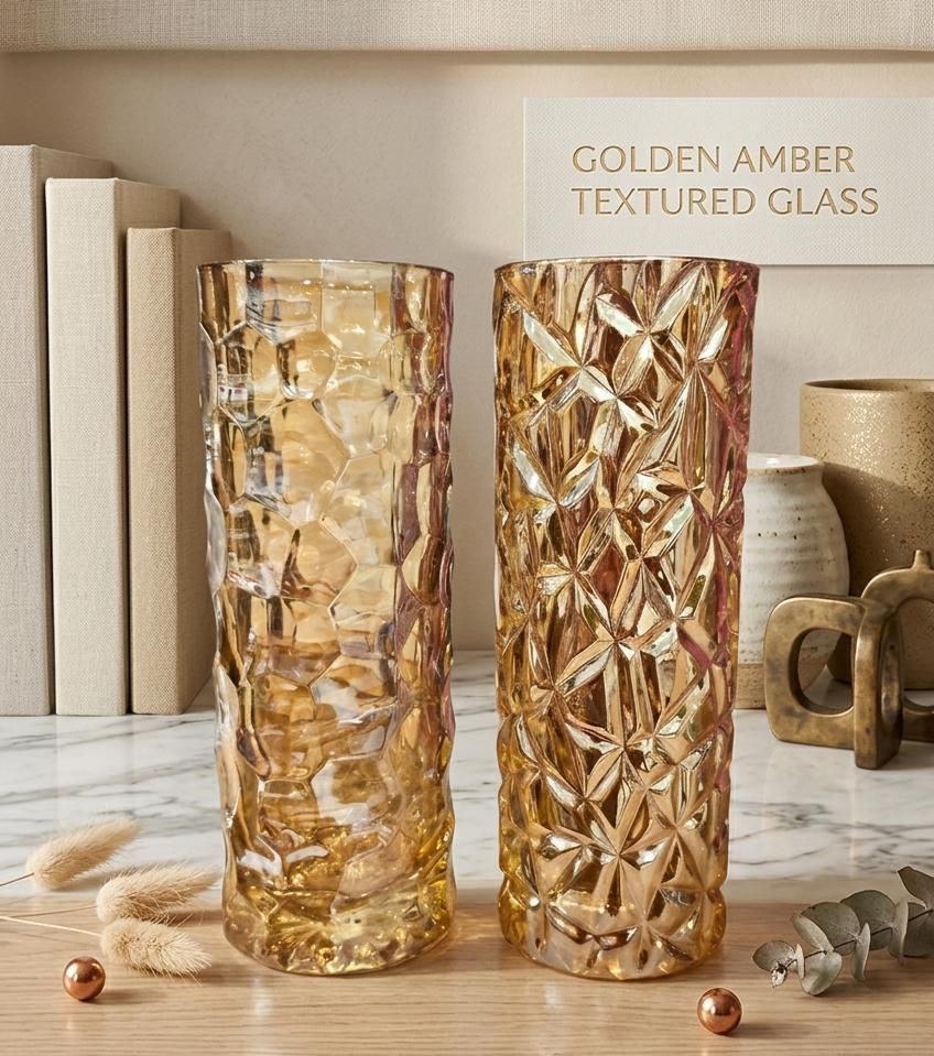 Florero cilindrico de vidrio tipo panal – 20*7cm (V4104)