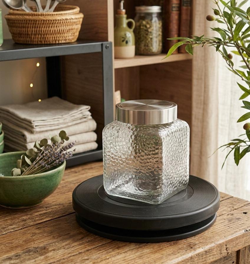 Frasco cuadrado de vidrio c/ tapa metálica – 1.3L (C5970)