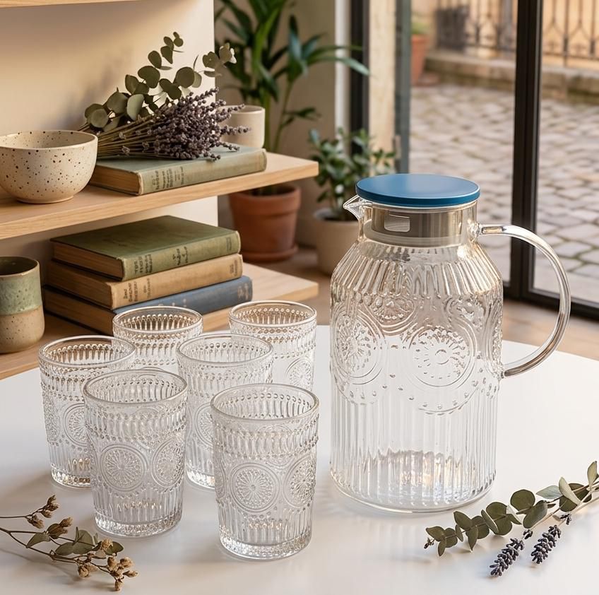 Juego de 6 vasos de 350mL + Jarra de vidrio de 1.8L (C6466)
