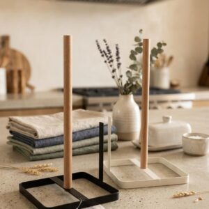 Porta-rollo de cocina c/ base metálica cuadrada