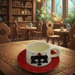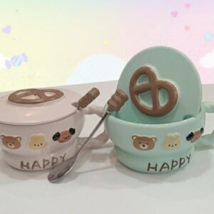Taza infantil de cerámica c/ cucharita lazo