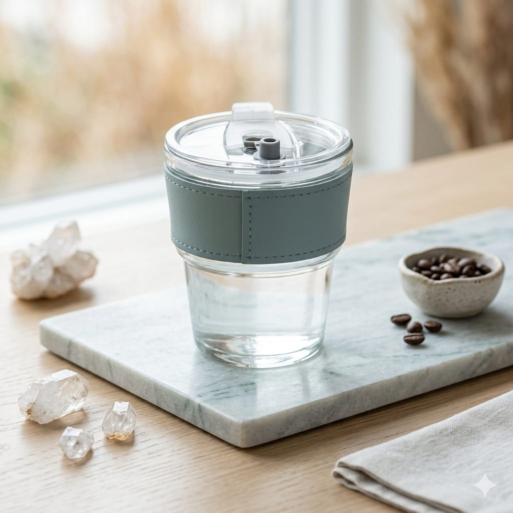 Vaso chico de vidrio c/ tapa + sorbete (57386)